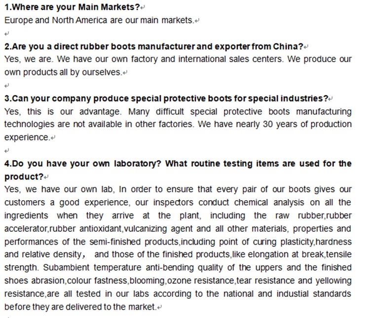 Populära Taggar: miljövänliga gummi regnstövlar, Kina miljövänliga gummi regnstövlar leverantörer, tillverkare, fabrik, prisvärda regnstövlar, bästsäljande regnstövlar, Billiga regnstövlar, Regnstövlar av hög kvalitet, Populära regnstövlar, premium regnstövlar